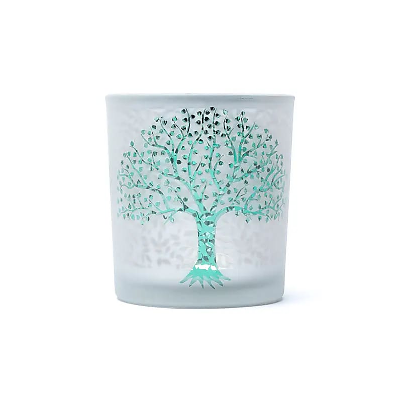 Unser Teelichthalter mit dem Baum des Lebens strahlt eine harmonische und ästhetische Atmosphäre aus, die jeden Raum bereichert. Hergestellt aus hochwertigem, gefrostetem Glas mit einem metallischen Finish, fängt er das Licht auf eine einzigartige Weise ein und zaubert faszinierende Lichteffekte.