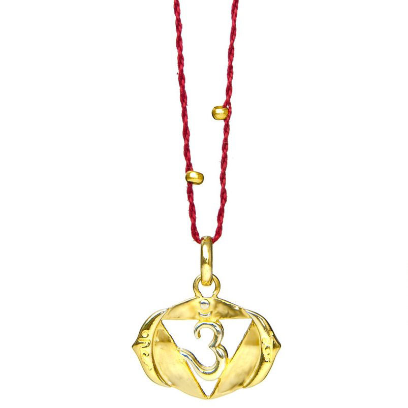 Das Stirnchakra, oder das Dritte Auge, steht für die geistige Klarheit. In der Mitte des Anhängers siehst du das OM Mantra, umrahmt von zwei Lotusblättern, die symbolisch für Energiekanäle, den sogenannten Nadis, stehen.