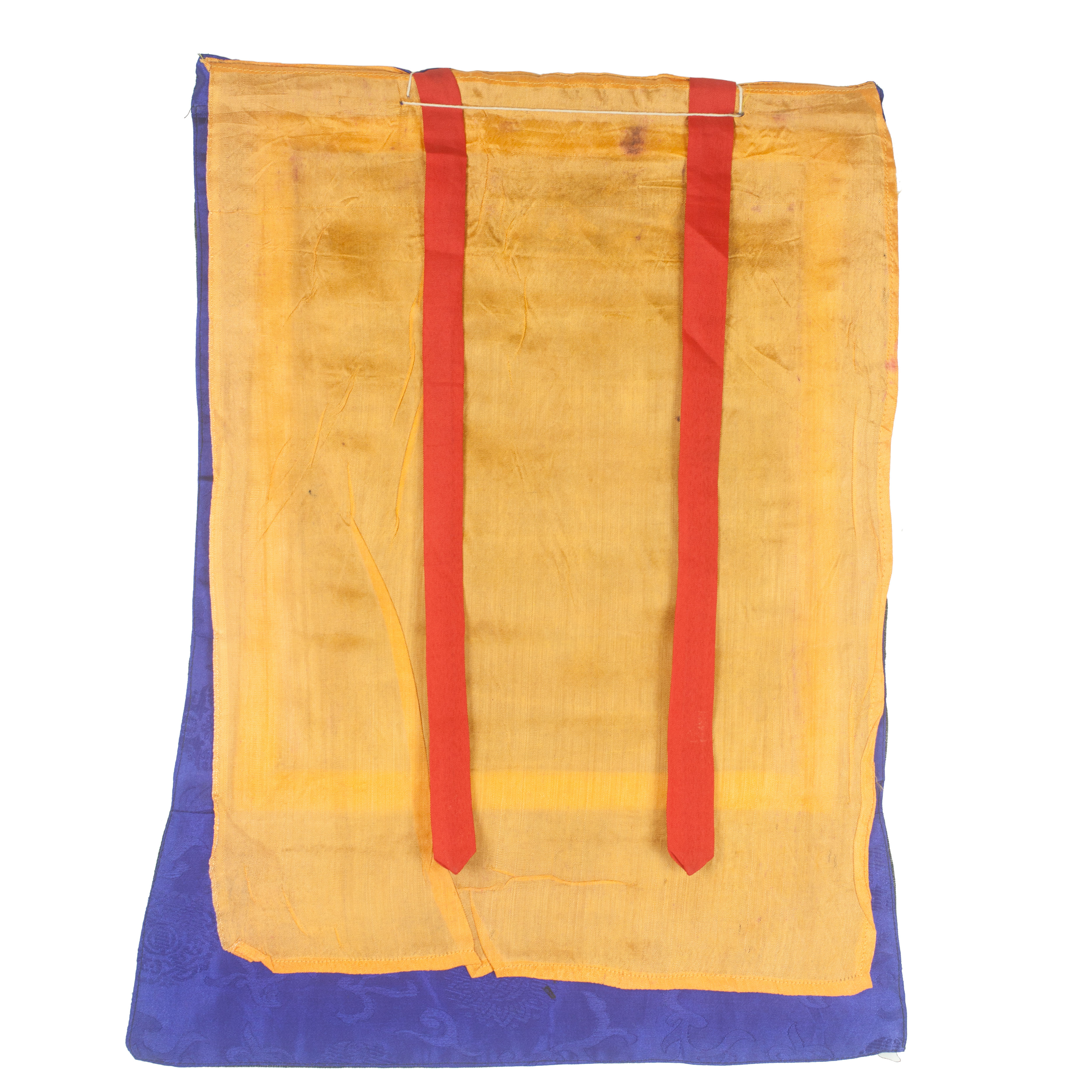 Ein Thangka ist ein tibetisches Gemälde, das traditionell als Unterstützung für die eigene Meditationspraxis verwendet wird. Die in tibetischen Gemälden dargestellte Bildsprache bietet einen Leitfaden für die aufwändigen Visualisierungen, die man in der tibetisch-buddhistischen Praxis macht. In tibetischen Häusern und Klöstern gelten Thangkas als heilige Gegenstände und werden oft über Schreinen aufgestellt. Das Thangka ist Handgemalt und in einer traditionellen Seidenbrokatbordüre eingerahmt.Das Thanka ist aus einer Privatsammlung, es weißt deutliche Gebrauchsspuren auf die auf den Bildern deutlich zu erkennen sind.Größe der Malerei: ca. 56 x73 cmGesamtgröße: ca. 72,5 x 110 cm