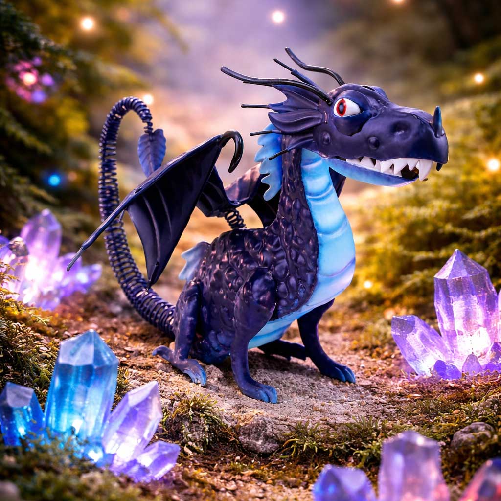 - Dynamisches Design: Drago besticht durch seine tiefblaue Färbung mit hellblauen Akzenten an Bauch und Hals. Besonders charmant ist sein langer, spiralförmiger Schwanz, der ihm eine verspielte und lebendige Note verleiht.