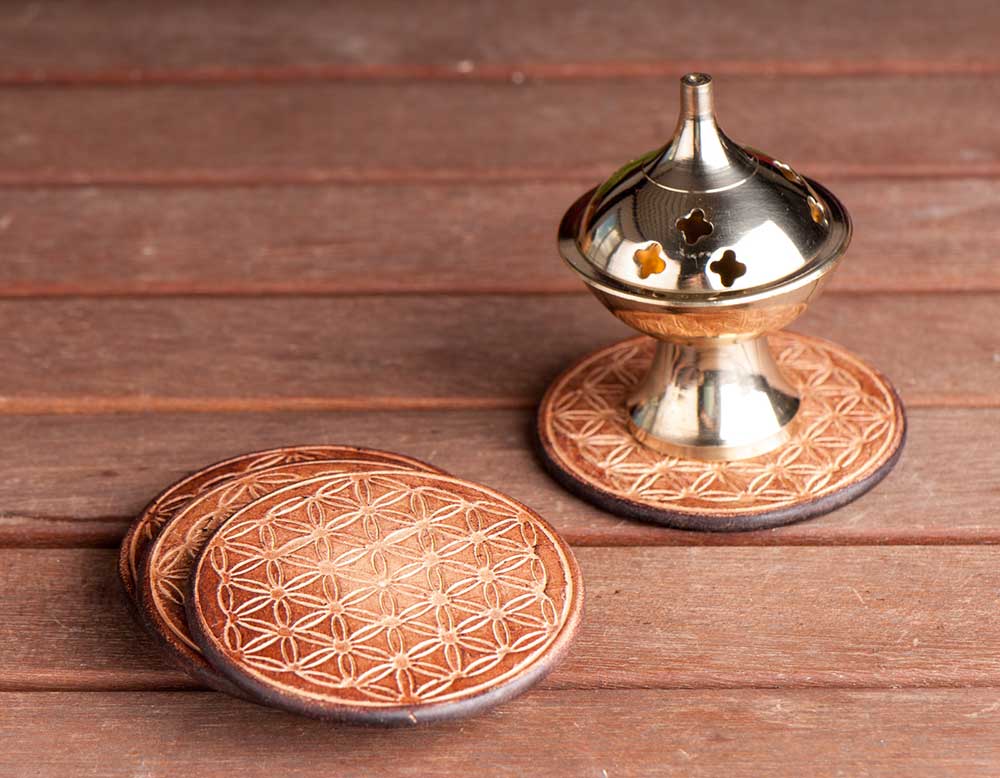 Insbesondere leichte Räuchergefäße aus Messing und Kupfer können während des Räucherns sehr heiß werden. Diese Untersetzer aus Holz sind bestens für alle Gefäße bis 7 cm Bodendurchmesser geeignet. Durch die eingravierte Blume des Lebens bekommt die Räucherung zusätzliche Kraft und den entsprechenden geschützten Rahmen.