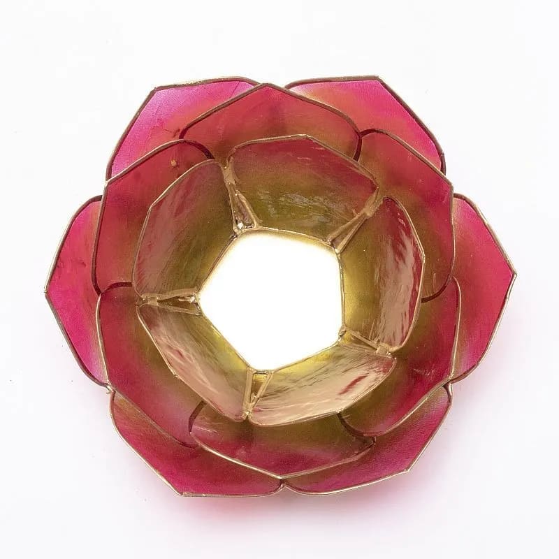 Produktinformationen "Lotus Teelichthalter rosa/hellgrün mit Goldrand"