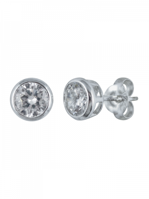 Erhältlich paarweise, Varianten: 4 mm und in 5 mm Durchmesser; Material: Zirkonia, in Silber gefasst.