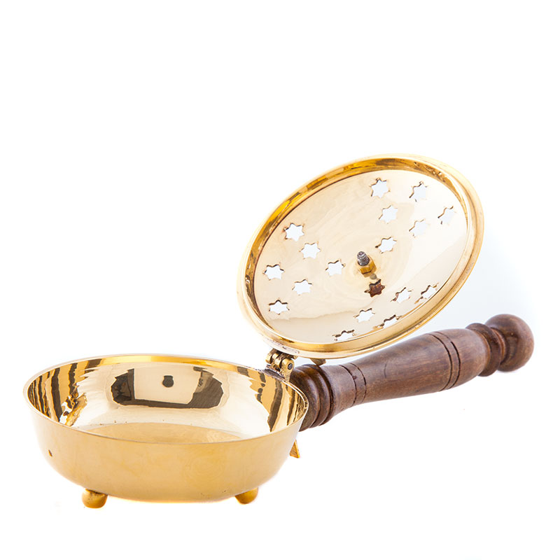 Räucherpfanne Messing mit Griff und Deckel.