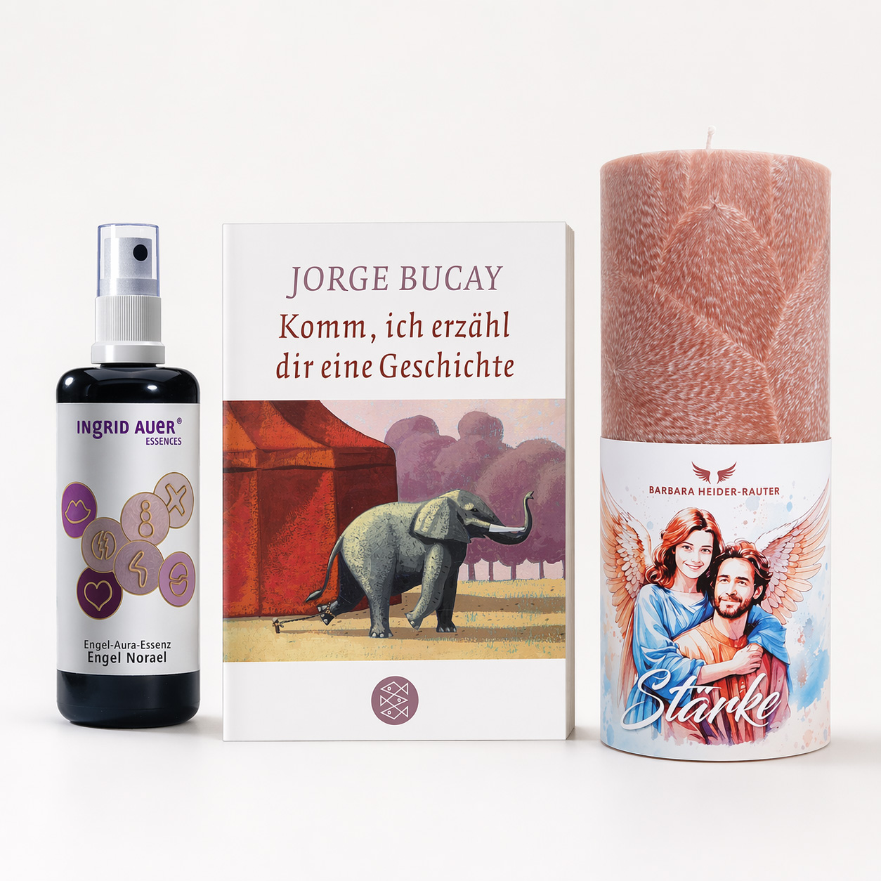 Dieses Set begleitet dich in genau solchen Augenblicken. Es verbindet warmes Kerzenlicht, einen feinen Aura-Spray und ein Buch mit berührenden Geschichten zu einer stimmigen Auswahl für ruhige Abendstunden.