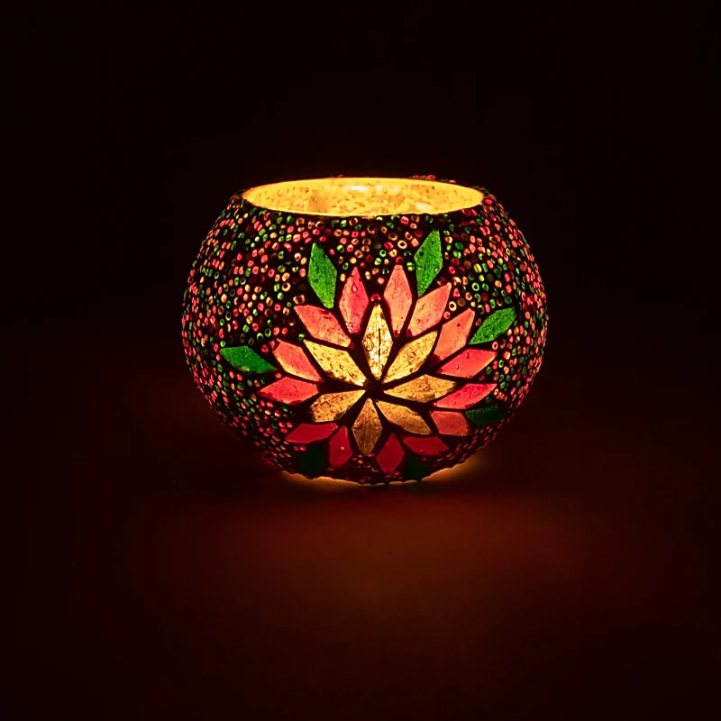 Farbigerer Kerzenhalter aus Glas, geeignet für Teelichter und Votivkerzen.