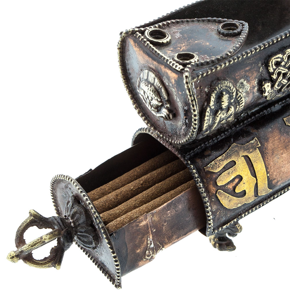 Tibetischer Räucherstäbchenhalter mit Glückssymbolen